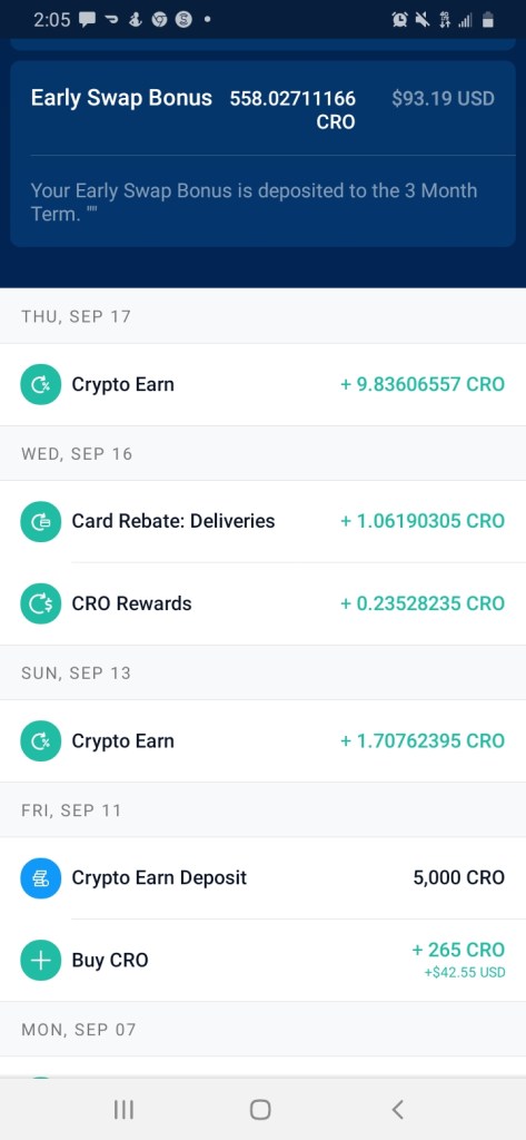 Besides the company’s changes in operations, I am fully invested. I am currently at the Ruby Red tier. Sometime in the near future I hope to upgrade to the Jade Green tier. As a novice investor I have more to learn, but I am taking advantage of the staking CRO and earning 2% cashback in CRO for every purchased made. Which may not appear to be a lot of cash back at first. The cashback will eventually add up. Although, it will always vary on your investment strategy on the platform.